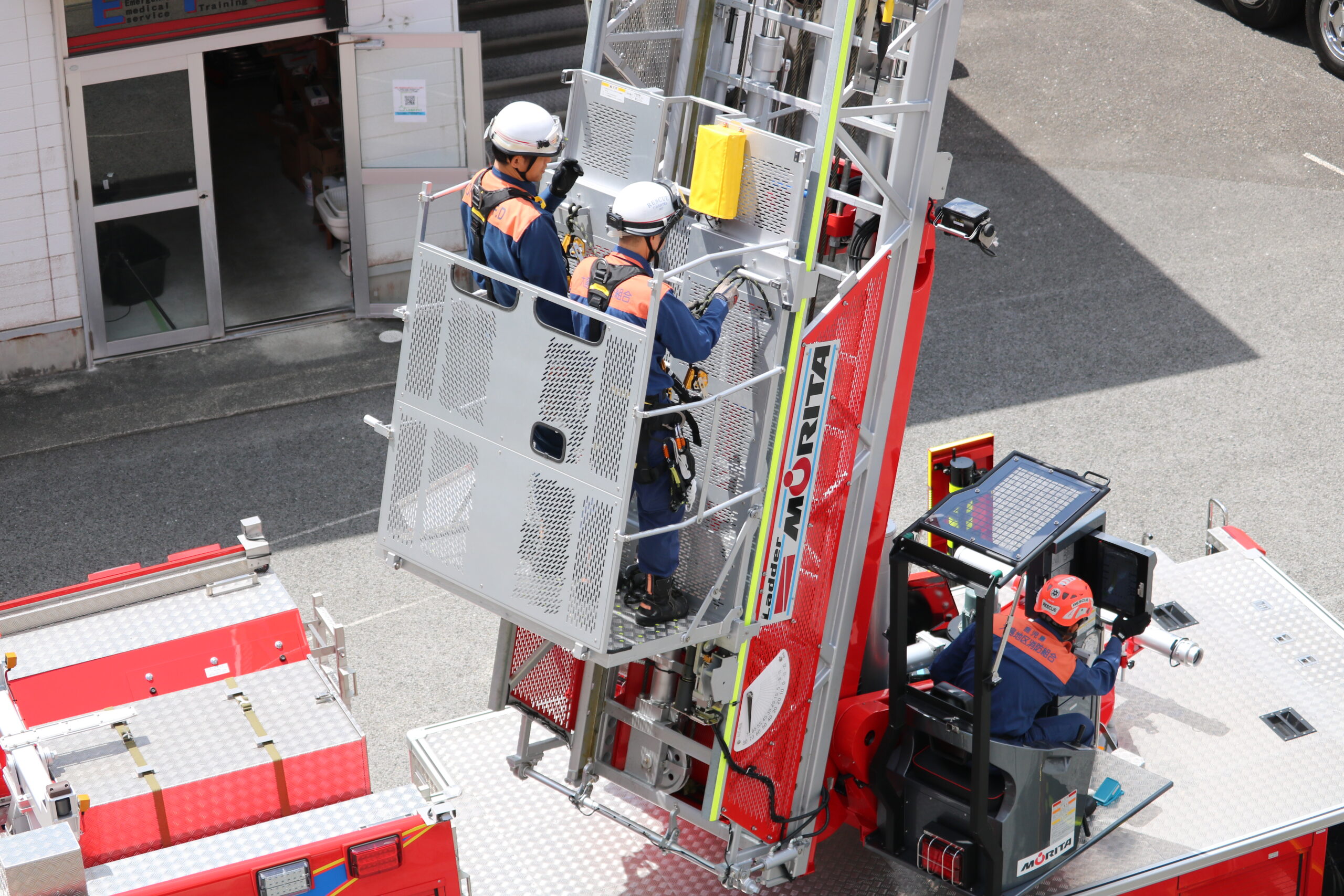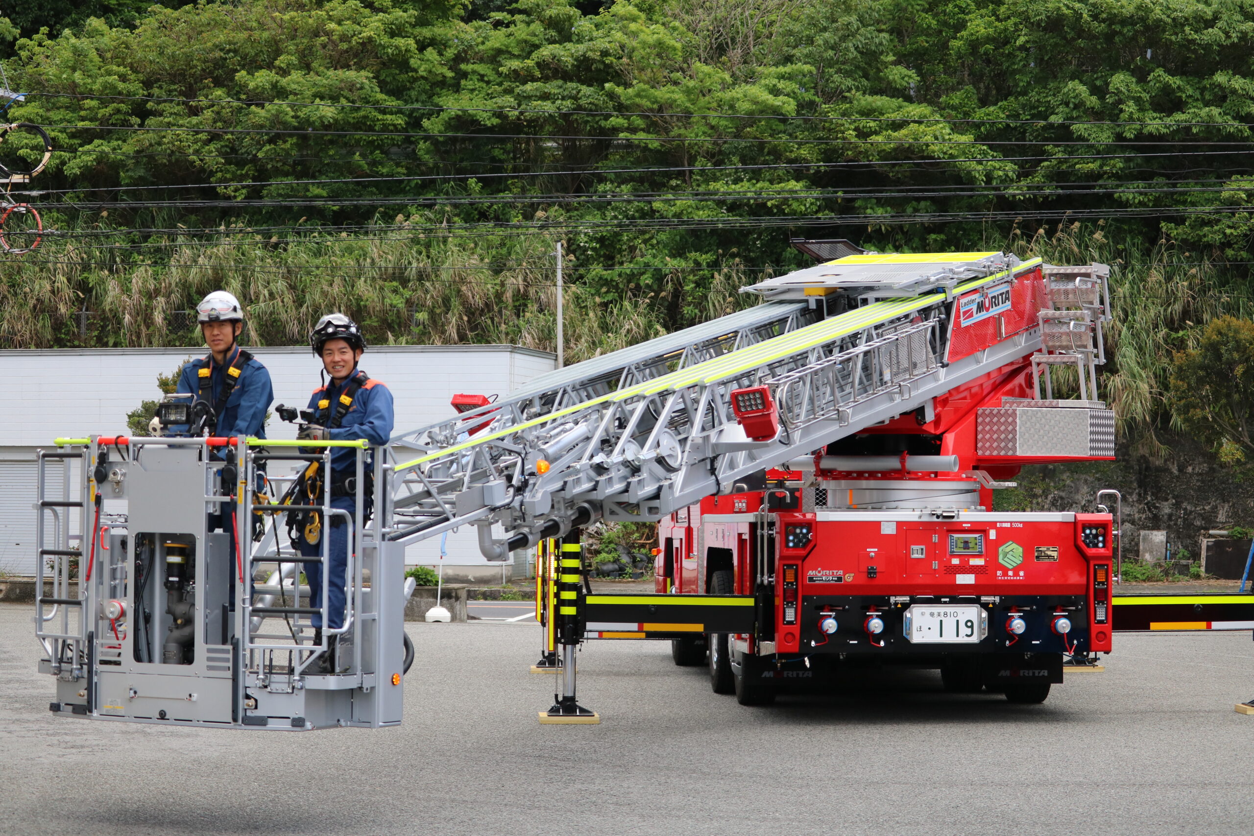 この度、当組合に最新鋭の「30m級先端屈折式はしご付き消防自動車」が導入されました!